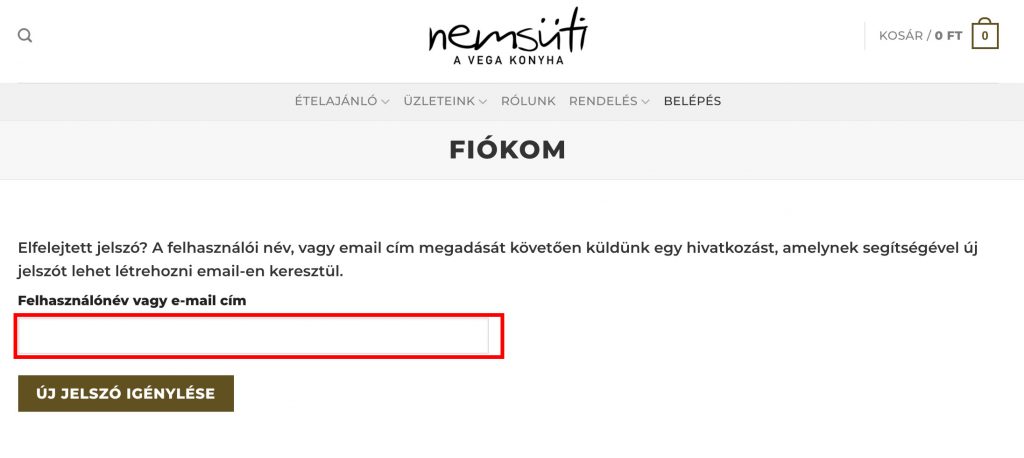 Írd be a korábban regisztrált email címedet és kattints arra, hogy „új jelszó igénylése”