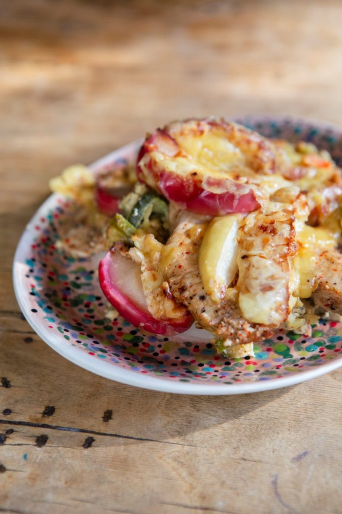 aszaltszilvás csirkecomb sajtos rakottkrumplival