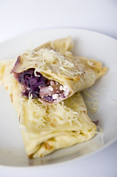 a képpel ellentétben nem palacsinta és nem lilakáposzta, hanem a kiválló tisztító hatású savanyú- és friss káposztás túrós tölteléket levelestésztás tepsibe töltjük, sajttal megszórva tálaljuk. egészséges de finom – nem csak ínyenceknek. allergének: 01, 07, 09