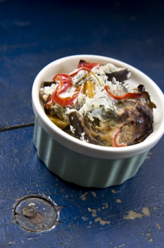 pirítunk padlizsánt, karfiolt, cukkinit, kápiát, répát – majd fűszeresen barnarizzsel és tejföllel tepsibe fektetjük és bivaly-mozzarellával halmozva összesütjük. isteni.