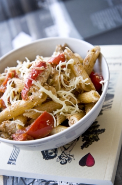 sült cukkinikarikák! bazsalikomos pesztós diós parmezános sajtos mártással! teljes kiőrlésű pennével! jól hangzik, ugye? egy újabb olasz ízesítésű tészta amivel érdemes a hetet kezdeni!