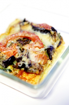 polentapizza parmezánnal, sült zöldségekkel