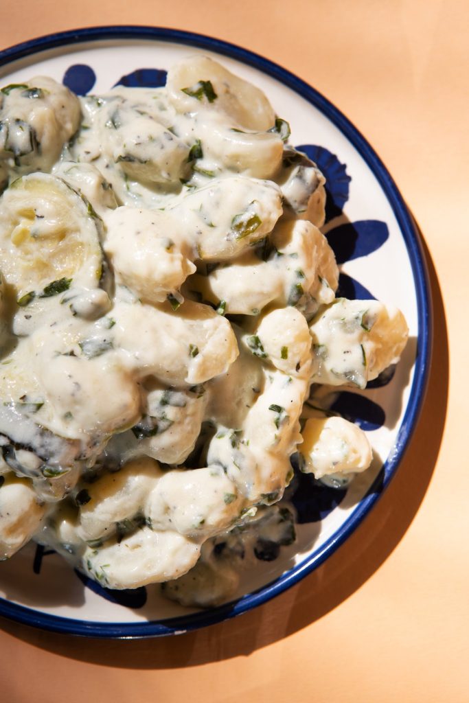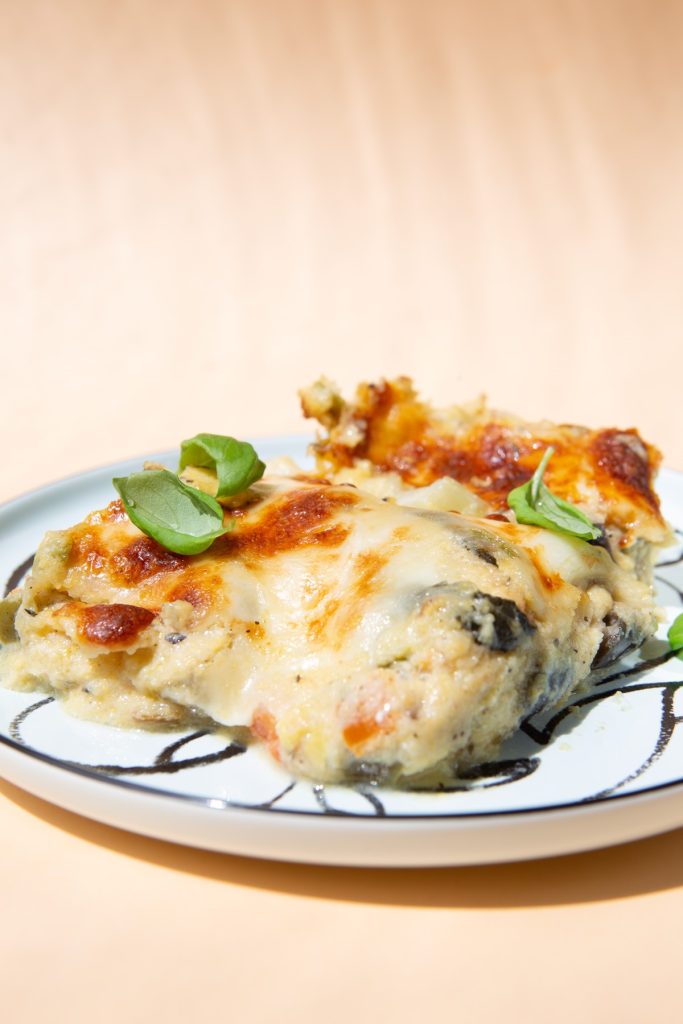 a kukoricadarából készült puliszka olasz rokona északolasz módra tepsibe fektetve, szarvasgombás pirított gombával, és zöldségekkel, ízes parmezános sajtmártással, tepsibe fektetve majd sajttal megszórva és összesütve – klassz!